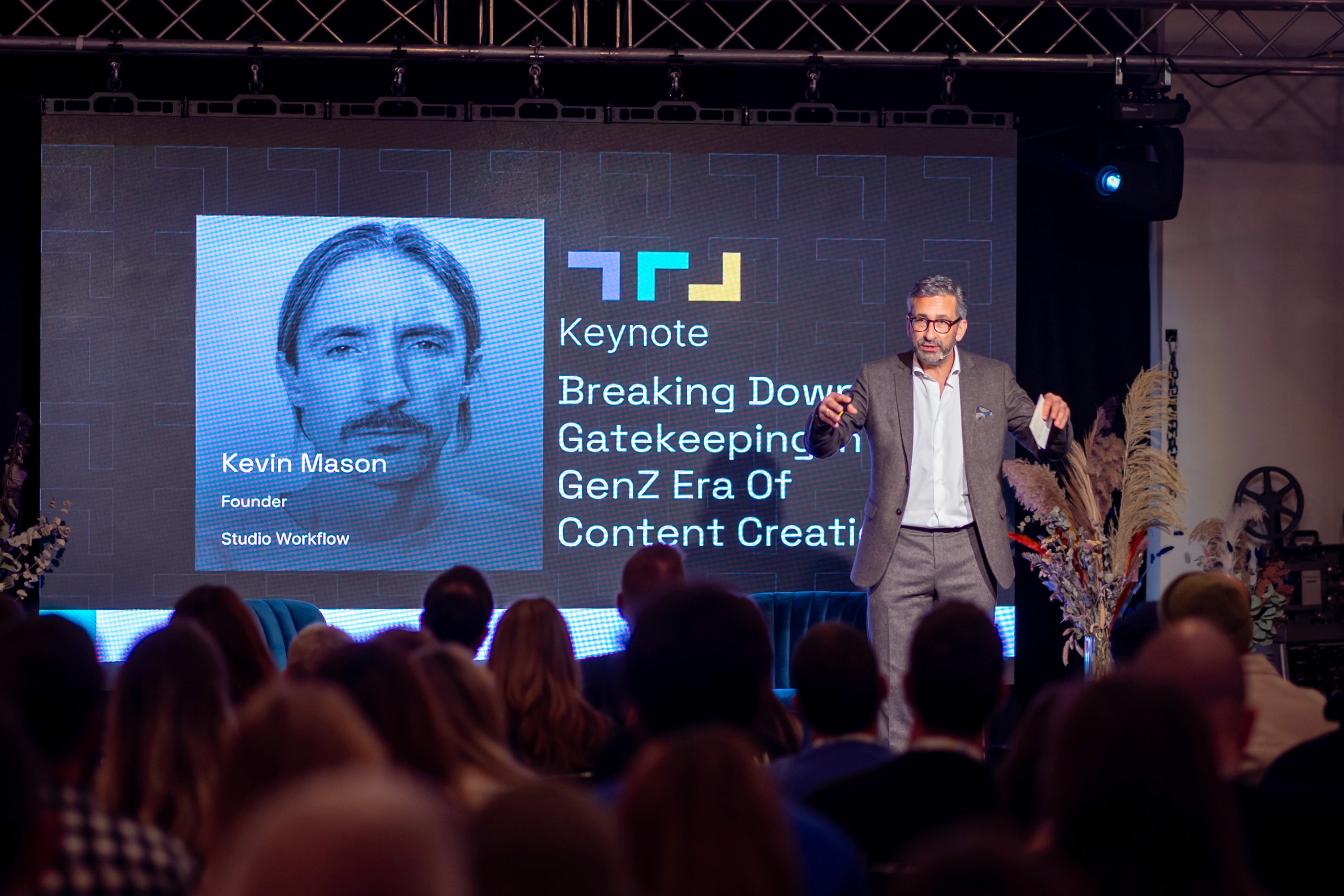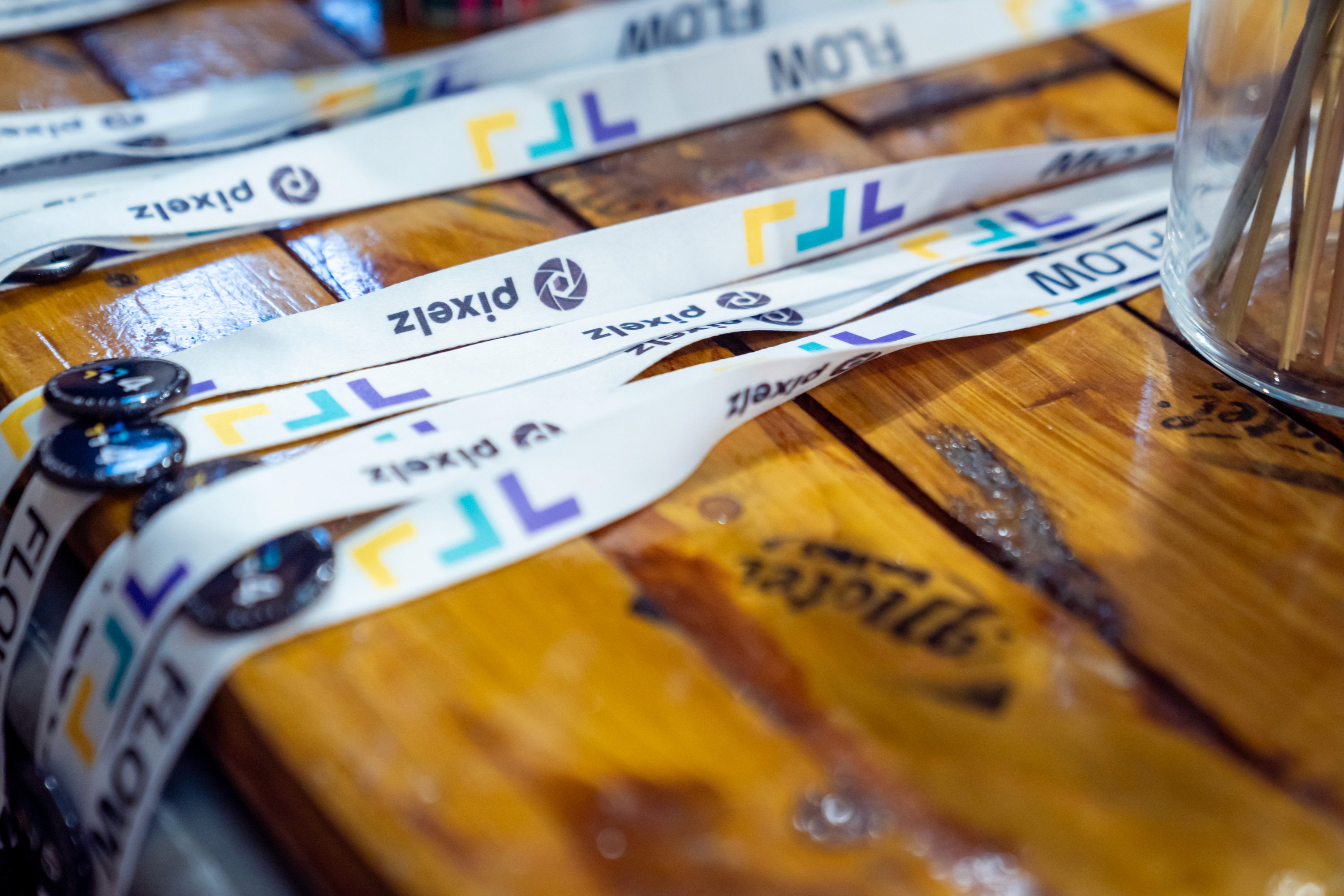 For the following edition of FLOW, I refreshed the visual direction with a bold black background, geometric shapes, and a wider color palette. The updated system was applied across keynote presentations and physical event assets including lanyards, pins, name badges, and vinyl stickers, creating a cohesive and expressive identity across both digital and in-person touchpoints.